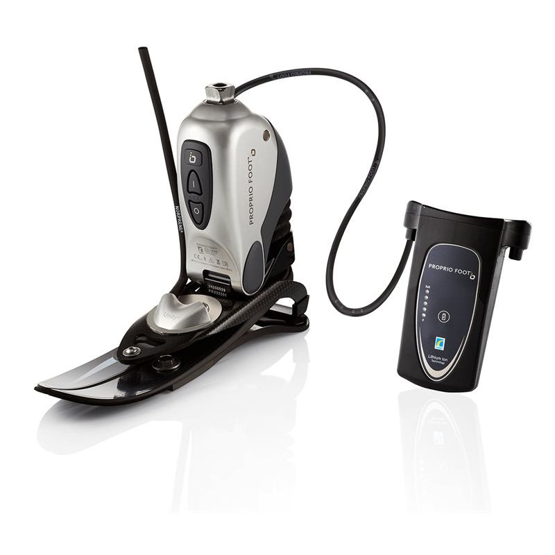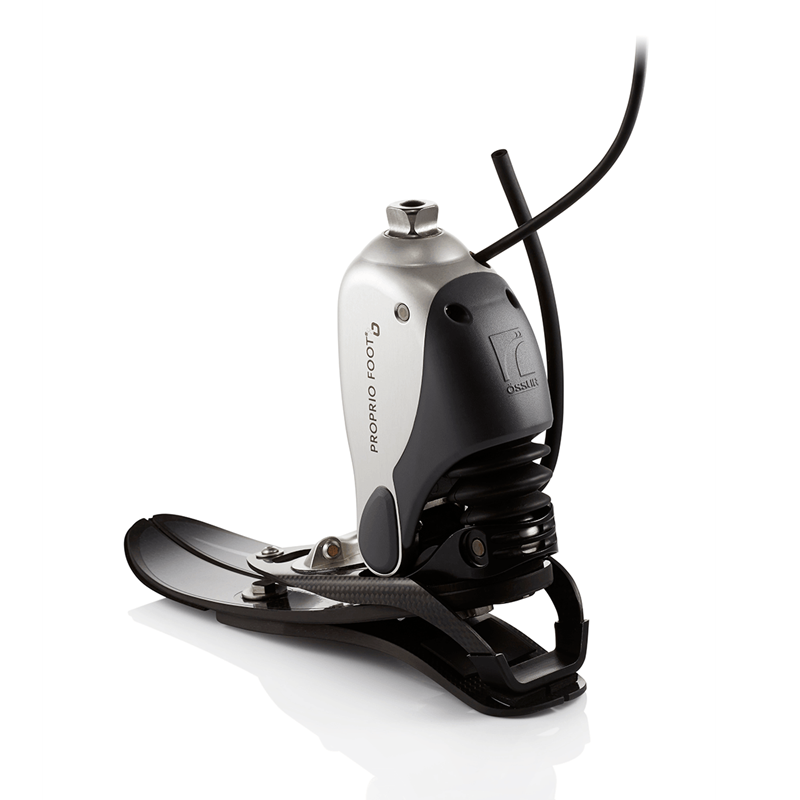 The Ossur Proprio Foot is a powered, adaptive prosthetics foot providing powered ankle motion, intelligent terrain adaptation, and natural function. Equipped with sensor technology that can recognize very subtle changes in movement, the Proprio Foot instantly responds to variations in ground surfaces using a precision motor that produces movements formerly performed by muscles. The Proprio Foot uses a patented Artificial Intelligence system called Terrain Logic to learn and adapt to the patient’s strides in order to produce the smoothest natural motion possible.